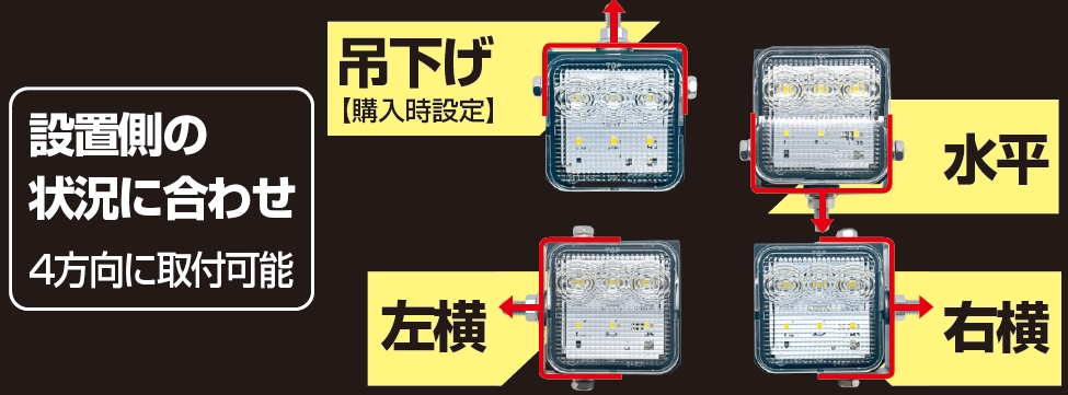 ●吊下げ・水平・左右横方向の4方向に取り付け可能