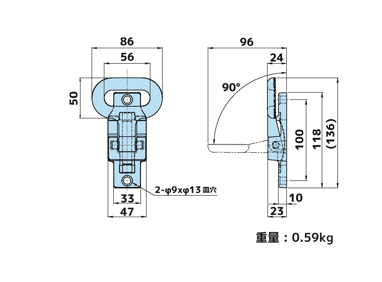 47x86x136 (取付穴φ9、ピッチ100mm)