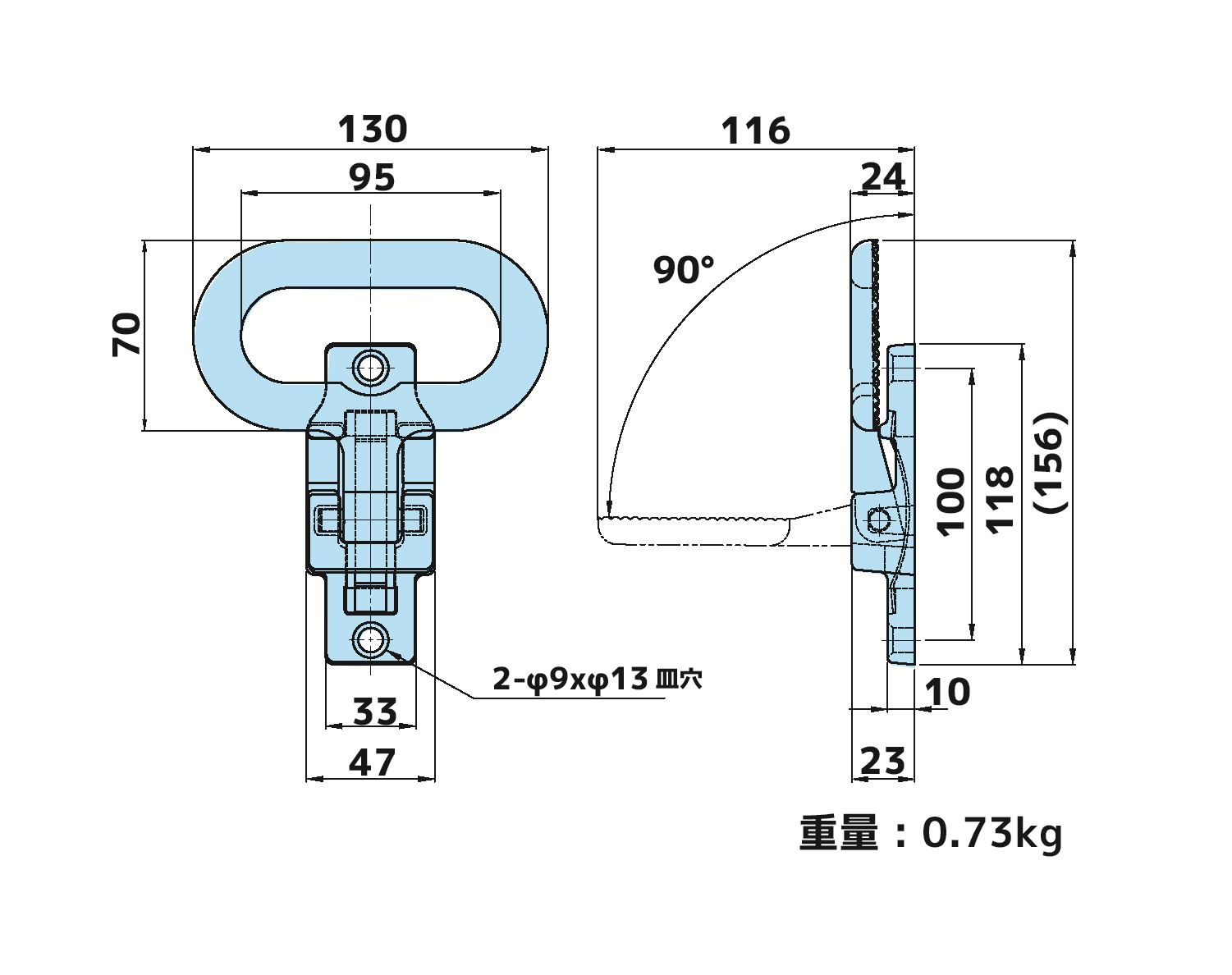 47x130x156 (取付穴φ9、ピッチ100mm)