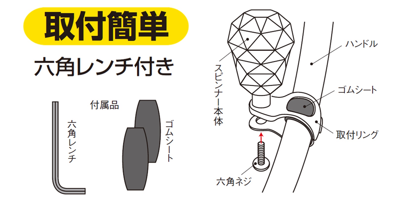 ●ベアリング機能でスムーズな回転●極太ハンドルカバーにも対応 ハンドルの太さ 28~33mmに対応●簡単取付 六角レンチ付