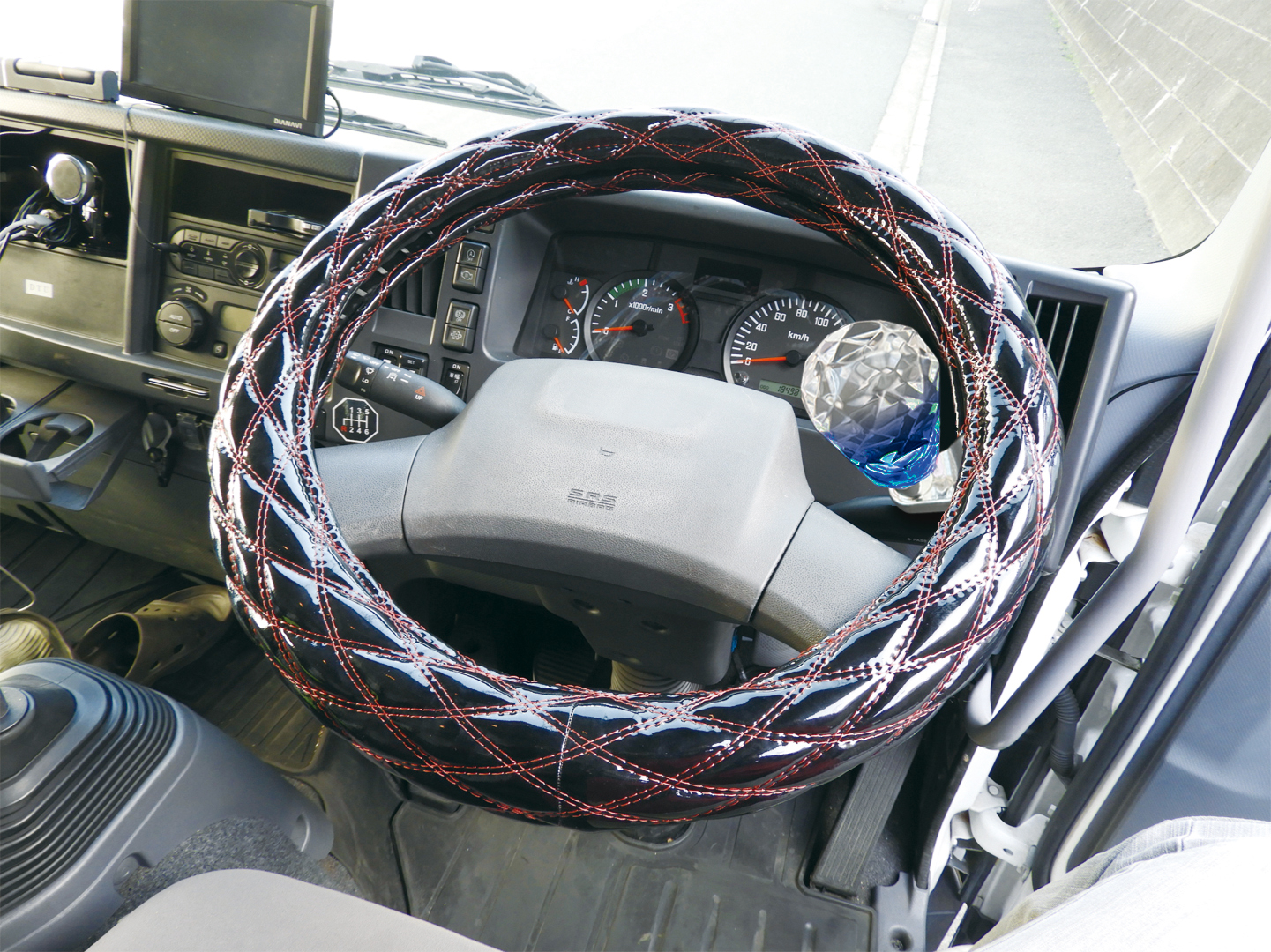 ハンドルが大きく重たいトラックやバスで、