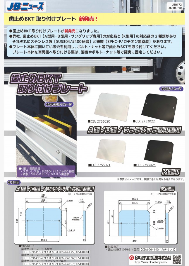 JB0167 JB埋込ステップ用あおり JBSTU、JBSTI 新発売!
