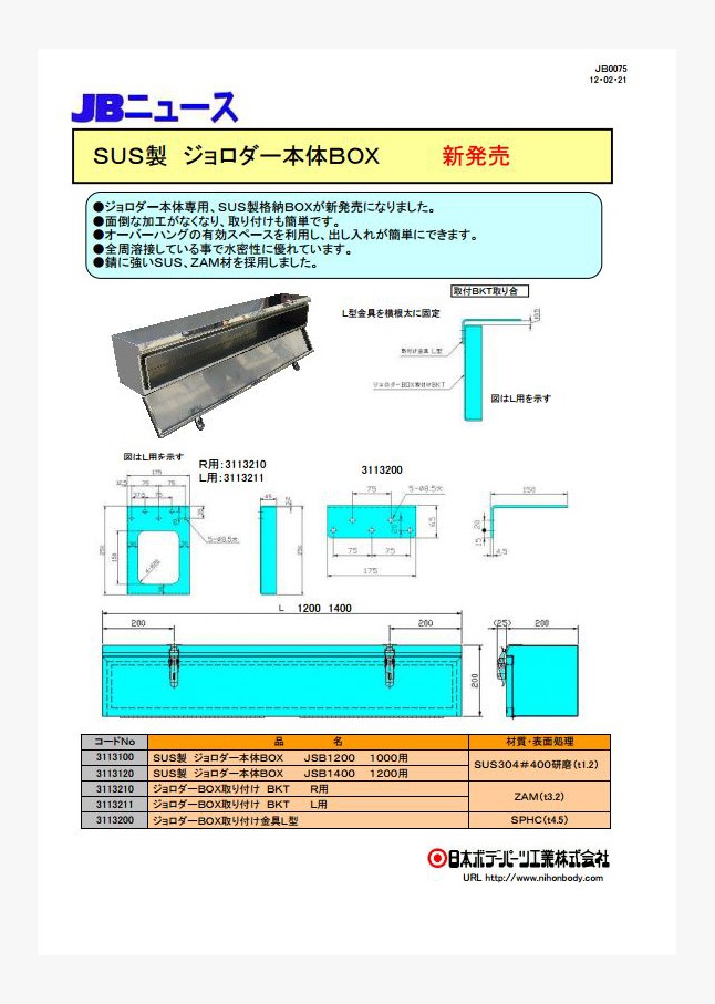 クレーン付きトラック等に使用するアウトリガー敷板用の格納BOXが新発売になりました。3種類の敷板サイズに対応。それぞれステンレス製・鉄製(カチオン黒塗装)があります。別売の専用ストッパーと尾錠の取り付けで、敷板本体の飛び出しを抑えることができます。