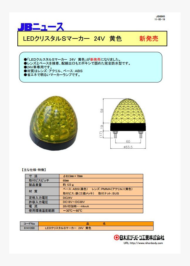 「LEDクルスタルSマーカー 24V 黄色」が新発売になりました。