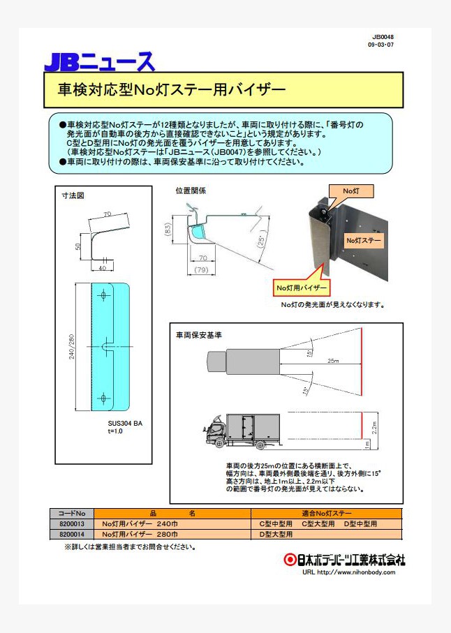 車検対応型No灯ステーにA型ダンプ用の50角平タイプ、50角起しタイプNo枠付きの2種類が加わり、14種類になりました。