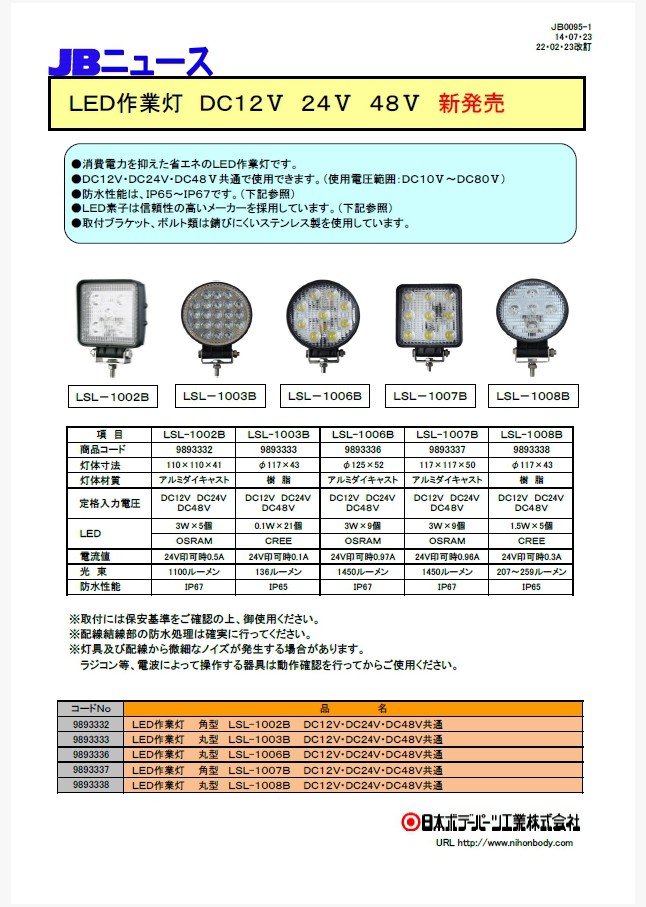 JB0110 LED作業灯 横長タイプ LSL-1012B 新発売!