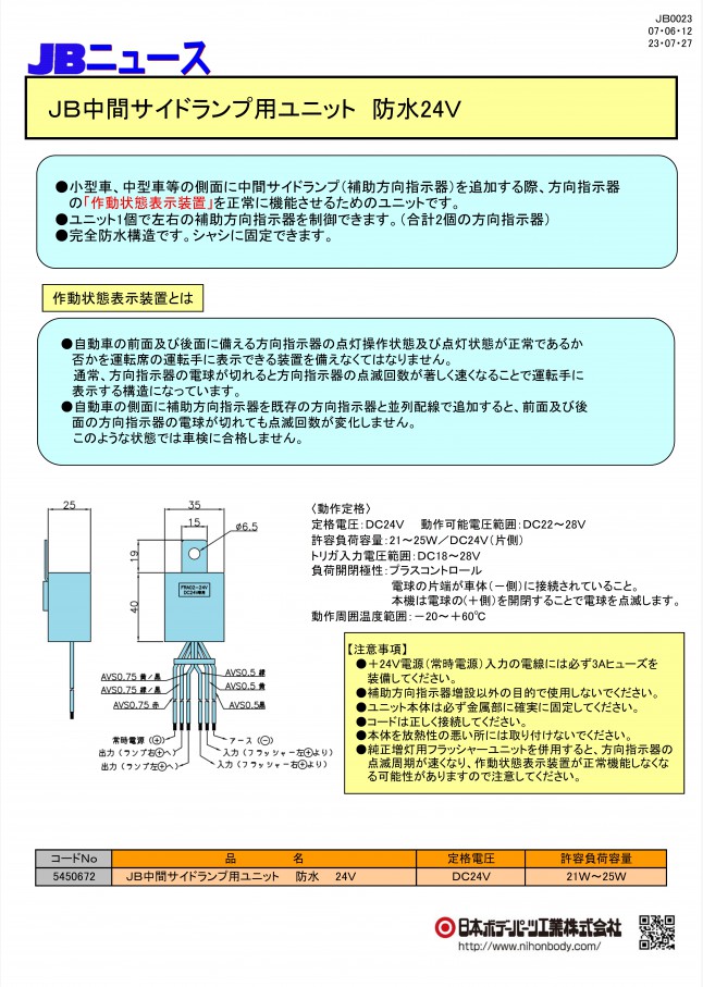 方向指示器の「作動状態表示装置」を正常に機能させるためのリレーを内蔵したASSYを球切表示対応として発売を開始します。