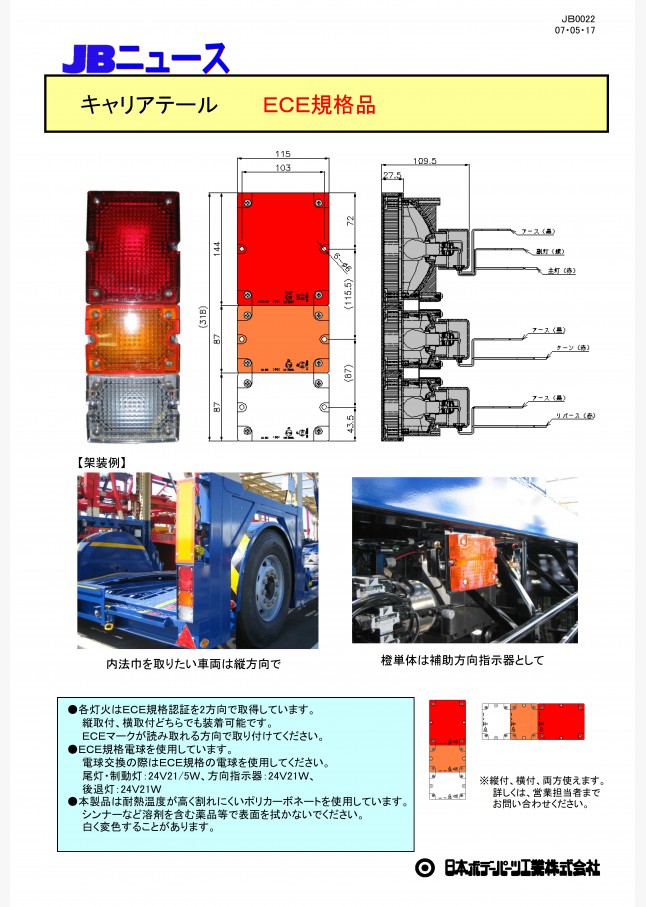 オールLEDタイプのマルチテールランプを新発売しました。DC24V専用、ECE認証取得品、環境負荷物質ELV指令適応。従来の電球タイプと寸法的に互換性あります。小型車から大型車、トラックから農耕機、建築車両などあらゆる車に装着可能です。