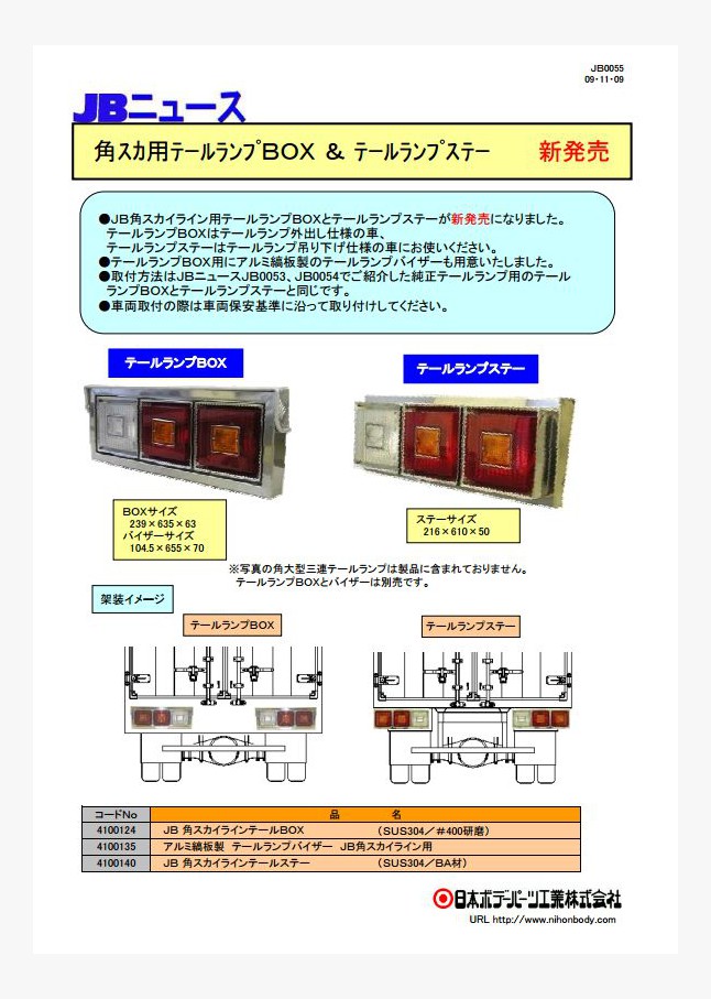 JB角型LEDテールランプ専用取付BOX(特殊型)が新発売になりました。