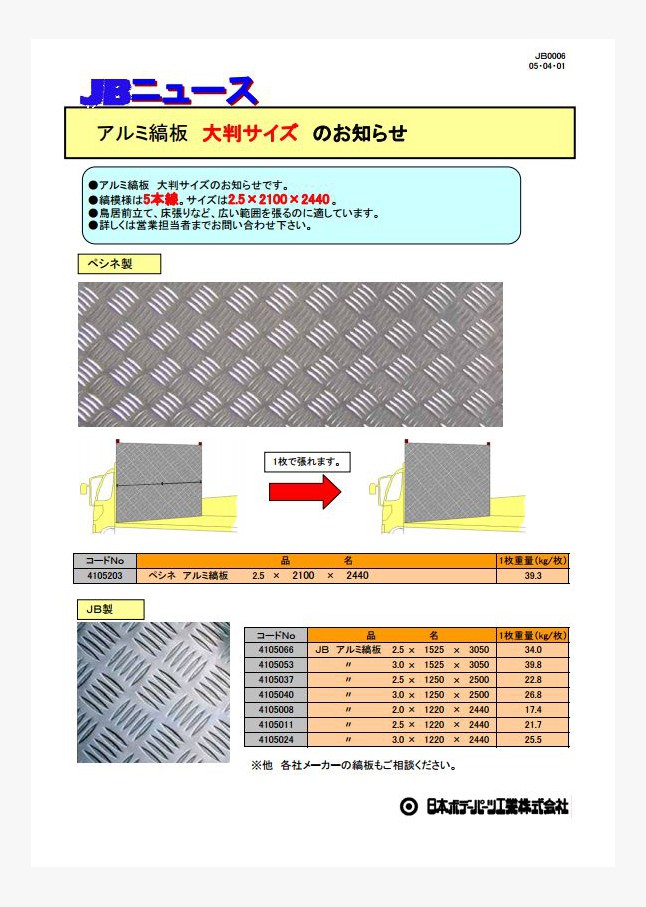 アルミ縞板 大判サイズのお知らせです。