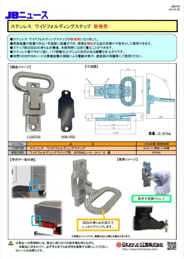 JB0169 ステンレスワイドフォルディングステップ 新アイテム+リニューアル!