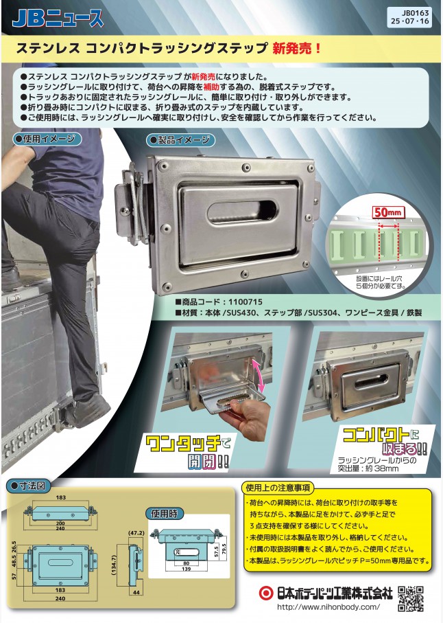 JB0163 ステンレス コンパクトラッシングステップ 新発売!