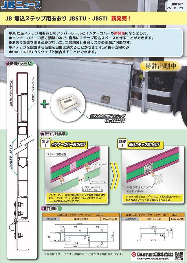 JB0167 JB埋込ステップ用あおり JBSTU、JBSTI 新発売!