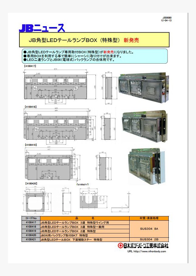 JB角型LEDテールランプ専用取付BOX(特殊型)が新発売になりました。