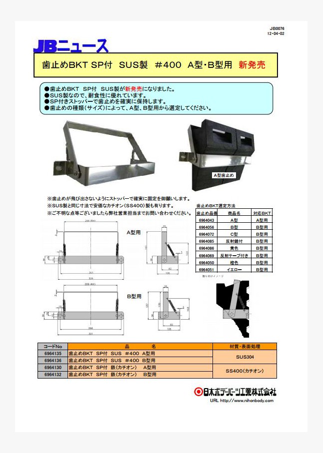 歯止めBKT SP付 SUS製が新発売になりました。