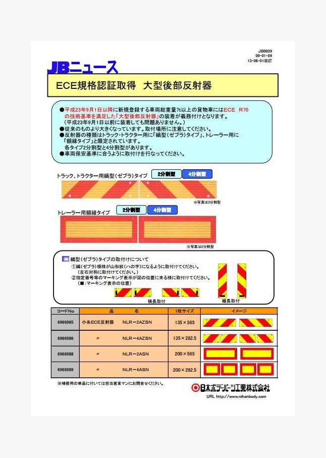 平成25年1月1日より適用される後部反射器の取付けに関する規則に適合した後部反射器を各種取り扱っています。