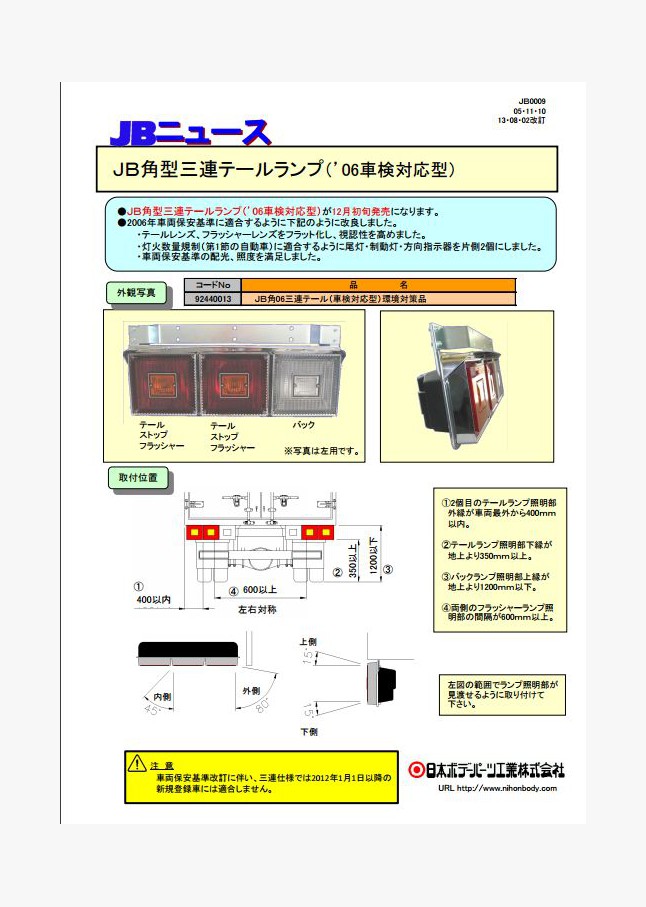JB角型三連テールランプ(’06車検対応型)が12月初旬発売になります。