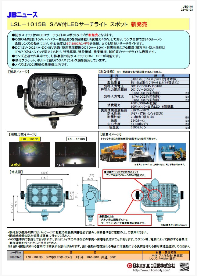JB0146 LSL-1015B S/W付 LEDサーチライト スポット 新発売!