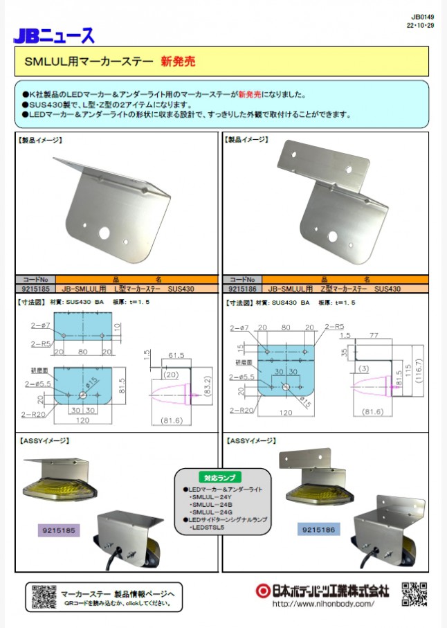 LEDマーカー&アンダーライト用のマーカーステーが新発売になりました。SUS430製で、L型・Z型の2アイテムです。すっきりとした外観で取り付けることができます。