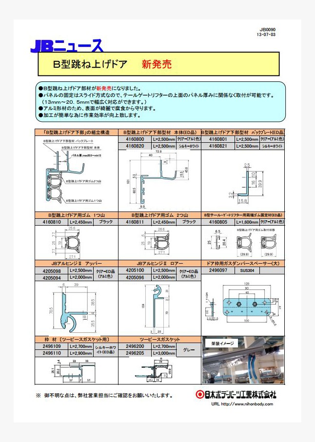 B型跳ね上げドア部材が新発売になりました。