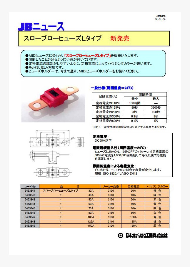 MIDIヒューズに替わり、「スローブローヒューズLタイプ」を販売いたします。