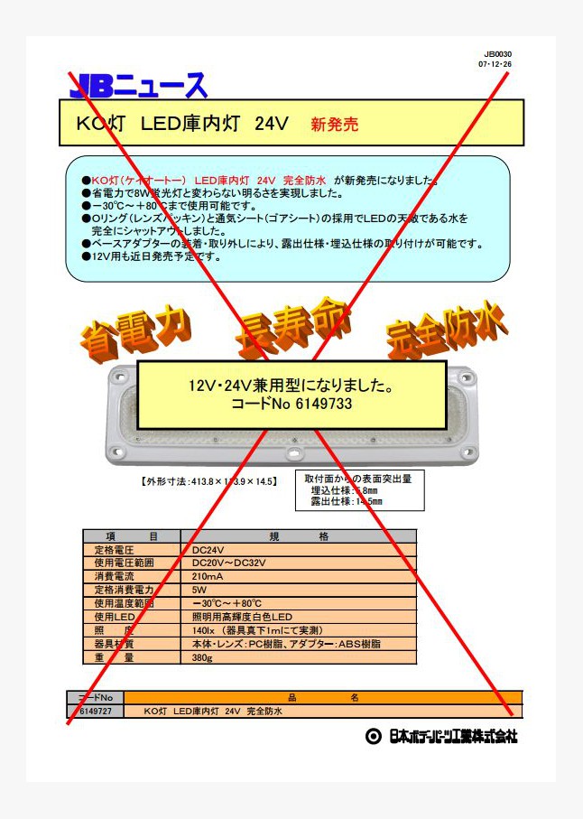 KO灯(ケイオートー) LED庫内灯 24V 完全防水 が新発売になりました。