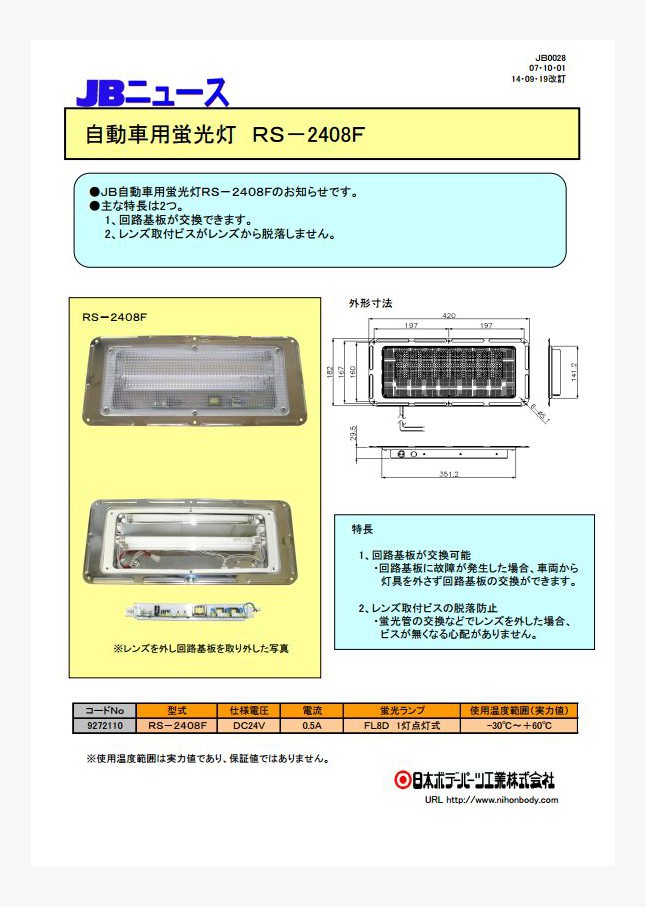 JB自動車用蛍光灯RS-2408Fのお知らせです。
