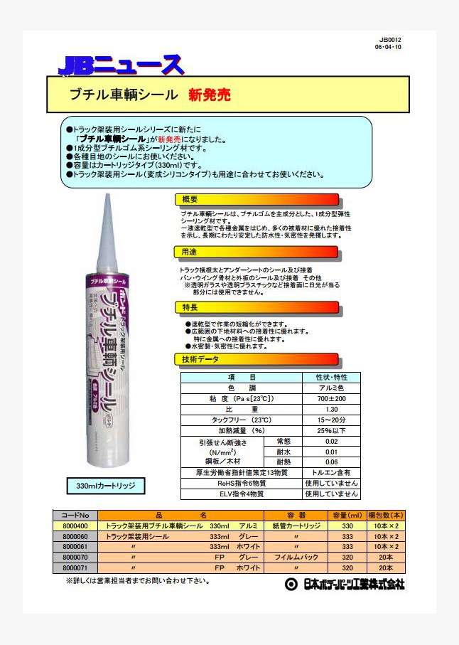 トラック架装用シールシリーズに新たに「ブチル車輌シール」が新発売になりました。