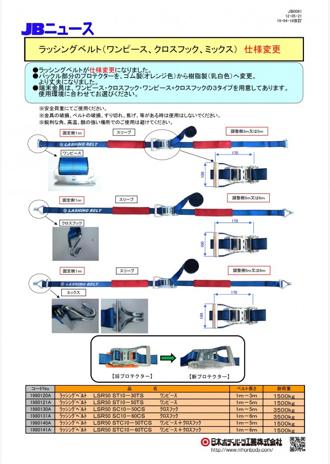 JB0081 ラッシングベルト(ワンピース、クロスフック、ミックス)