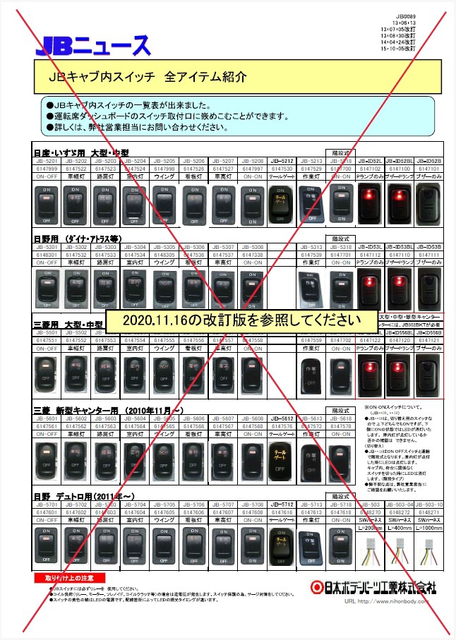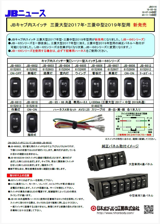 JB0116 JBキャブ内スイッチ 三菱大型2017年・三菱中型2019年 新発売!