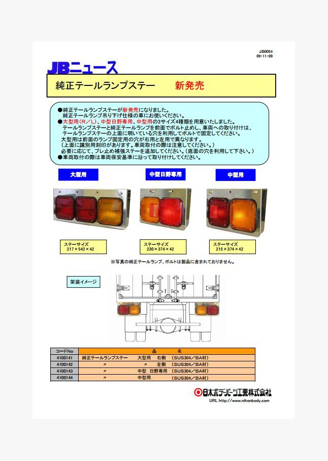 JB激光LEDシリーズの角BIGマーカー専用、トラクタ用サイドランプステーが新発売になりました。4ディーラー各社のサイドバンパーにそのまま取り付けできます。