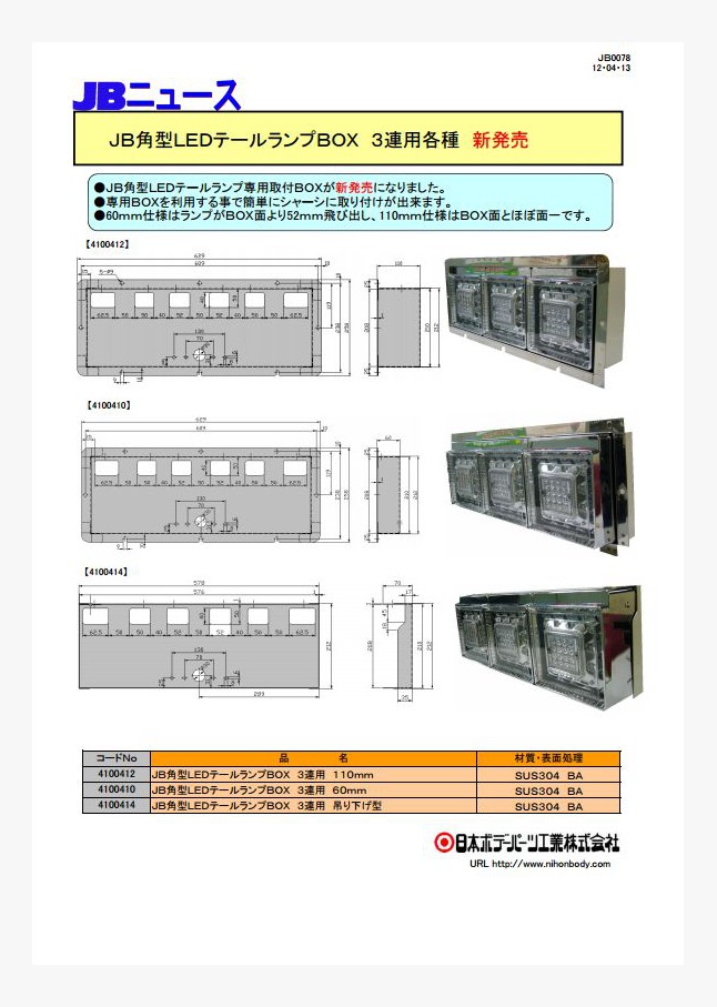 JB角型LEDテールランプ専用取付BOX(特殊型)が新発売になりました。