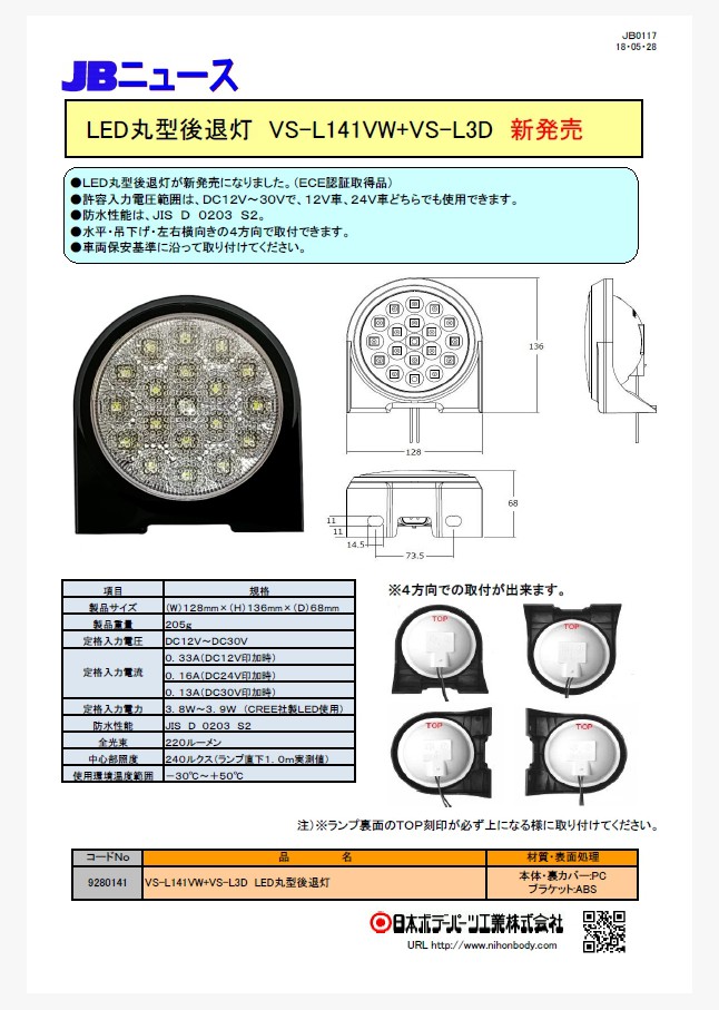 JB0117 LED丸型 後退灯 VS-LVW+VS-L3D 新発売!