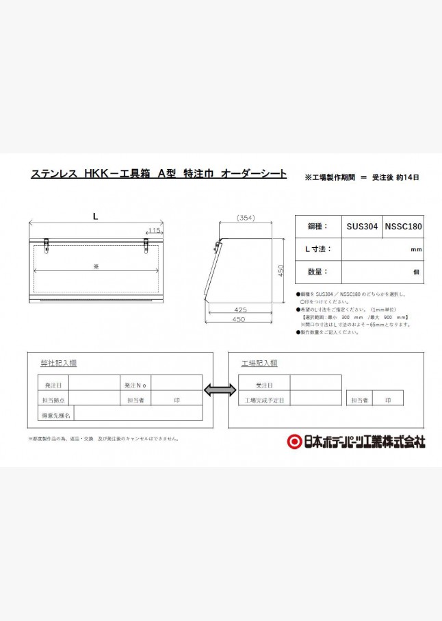 ※HKK型ステンレス工具箱 特注巾 A型オーダーシートダウンロード