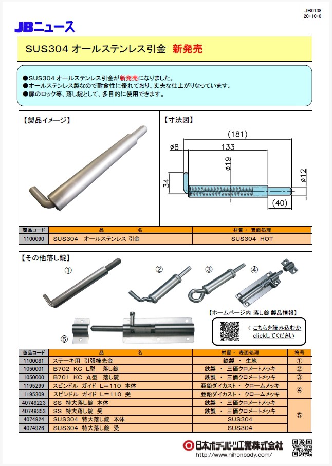 オールステンレス製の引金が新発売になりました。扉のロック等、落し錠として、多目的に使用できます。