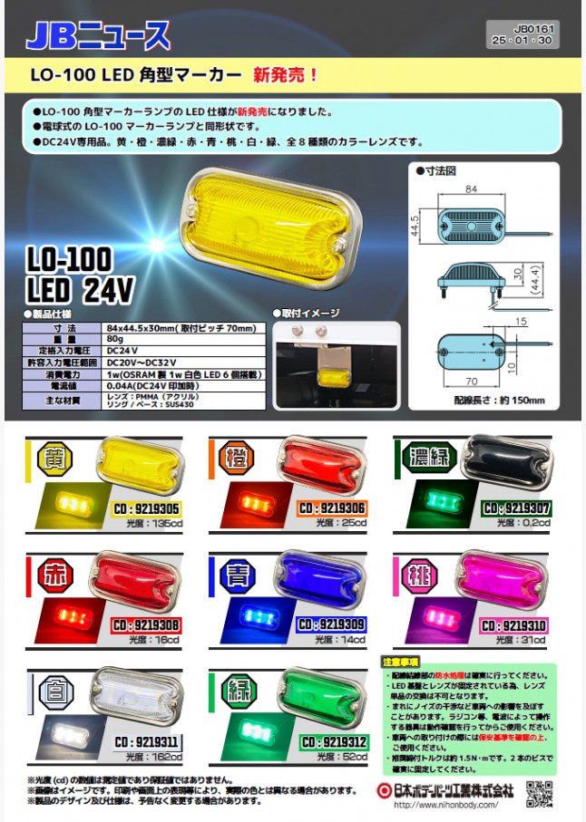 JB0161 LO-100 LED角型マーカー 24V 新発売!