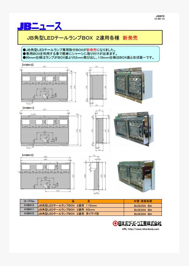 JB角型LEDテールランプ専用取付BOX(特殊型)が新発売になりました。