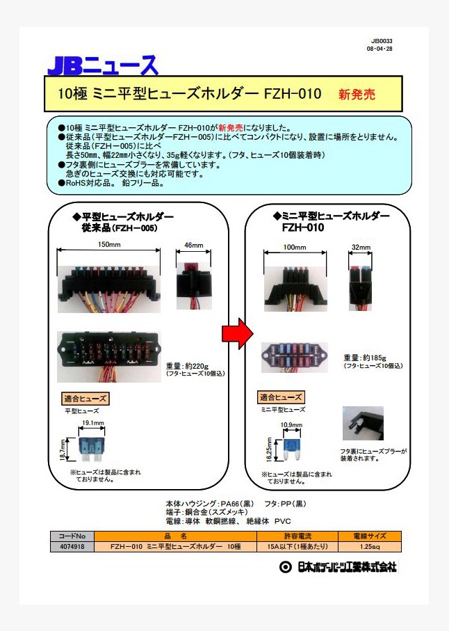 10極 ミニ平型ヒューズホルダー FZH-010が新発売になりました。