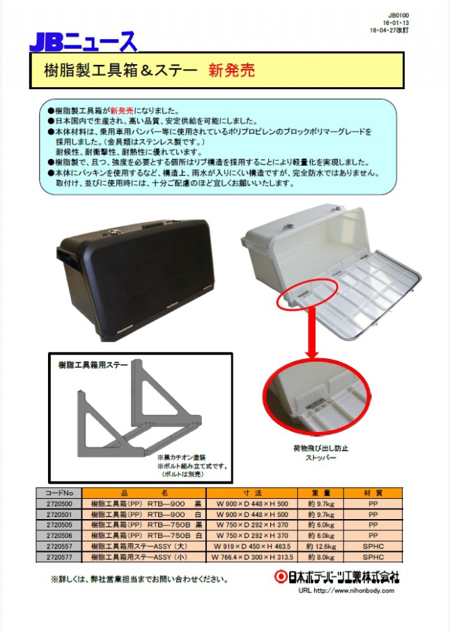 樹脂製工具箱を新発売しました。日本国内で生産された[高い品質][安定供給]が可能な製品です。