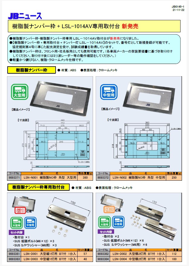 JB0145 樹脂製ナンバー枠+LSL-1014AV専用取付台 新発売!