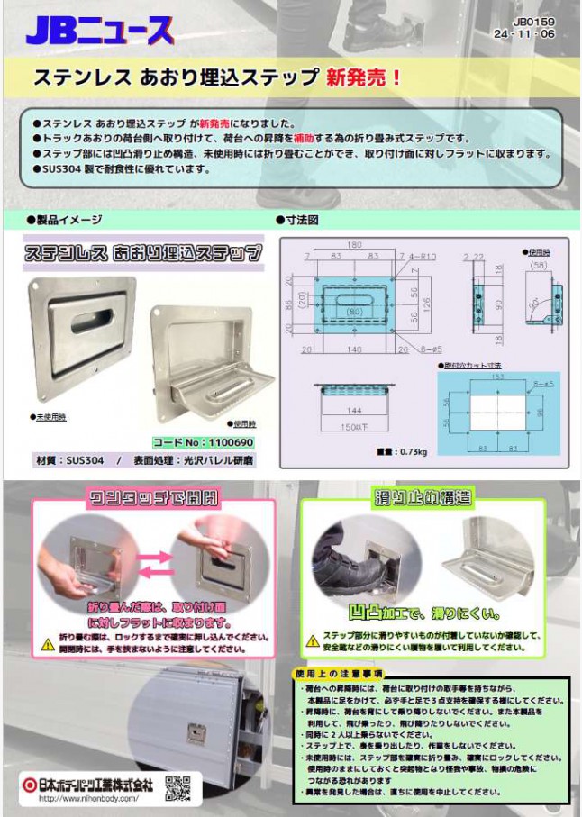 JB0167 JB埋込ステップ用あおり JBSTU、JBSTI 新発売!