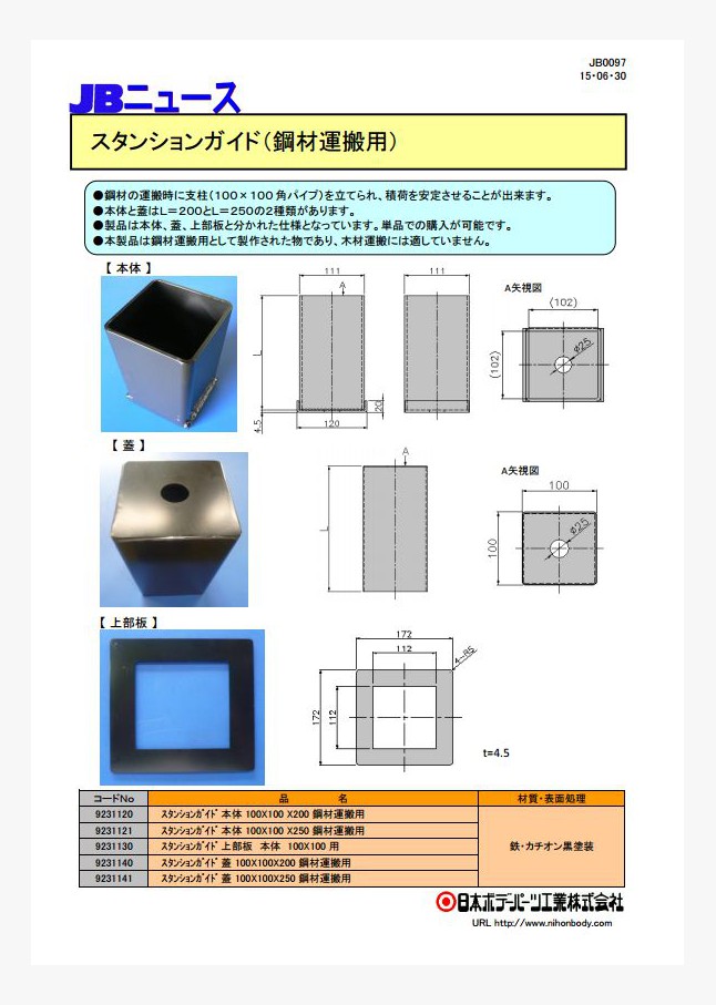 鋼材運搬時にトラック荷台に支柱(100×100角パイプ)を立てるためのガイドを新発売しました。