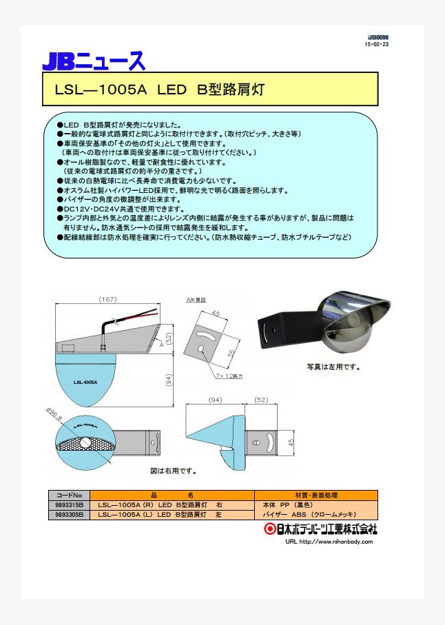 「JB607CR12ハイマウントストップランプ」が発売開始になりました。