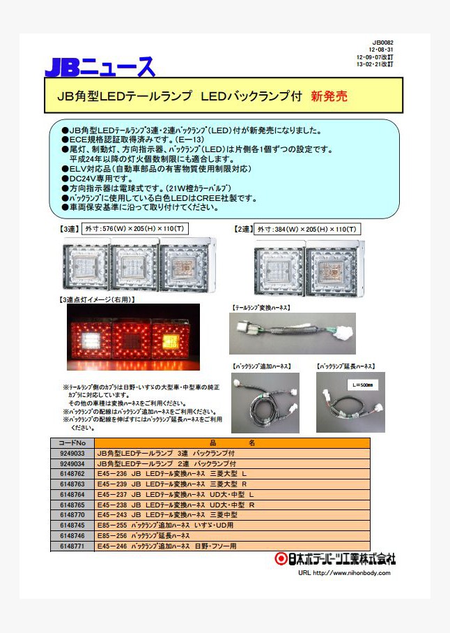 JB0082 JB角型LEDテールランプLEDバックランプ付