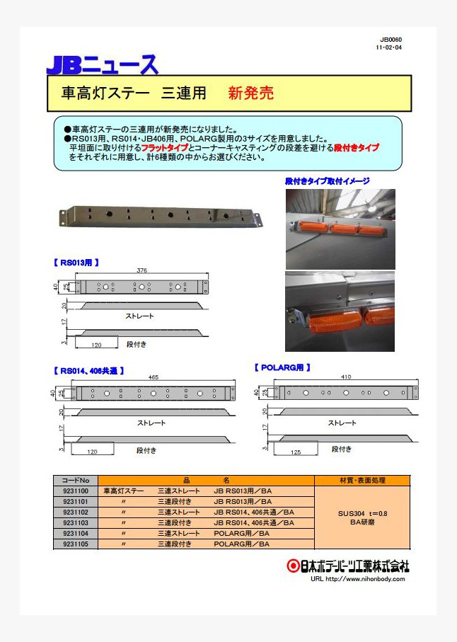 JB0167 JB埋込ステップ用あおり JBSTU、JBSTI 新発売!