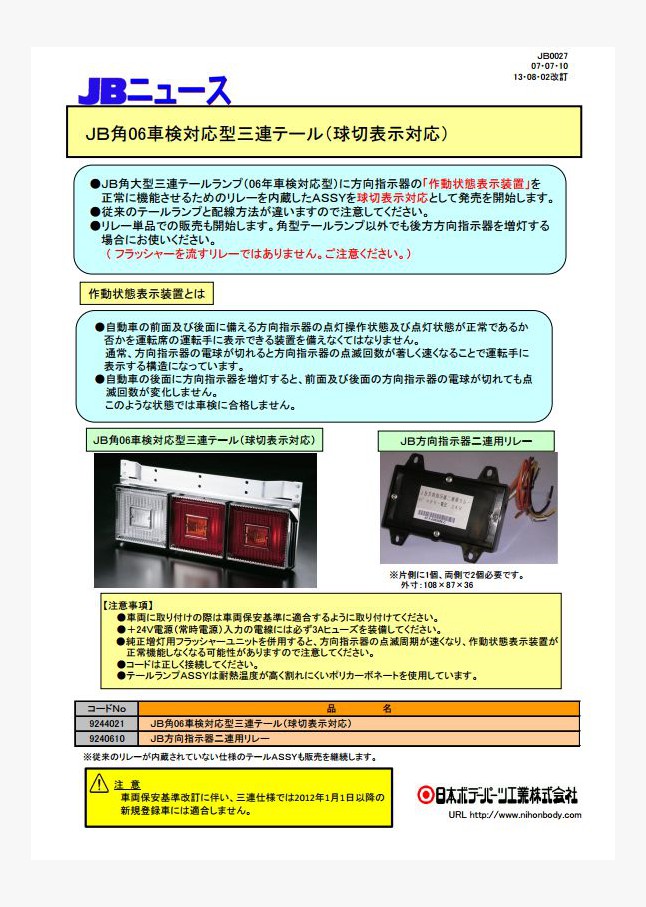 方向指示器の「作動状態表示装置」を正常に機能させるためのリレーを内蔵したASSYを球切表示対応として発売を開始します。