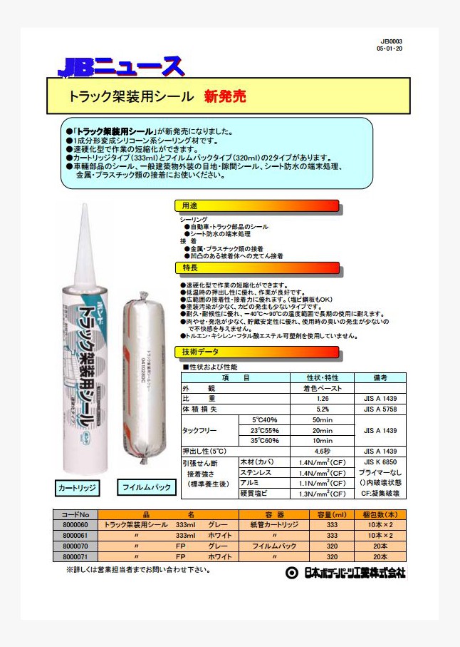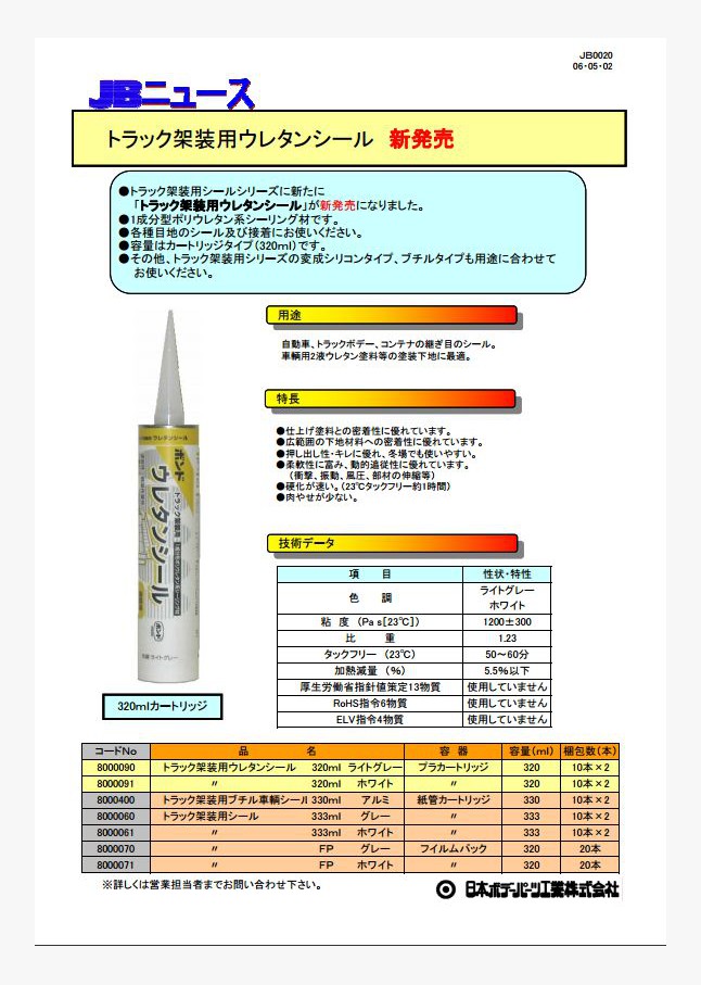 トラック架装用シールシリーズに新たに「トラック架装用ウレタンシール」が新発売になりました。