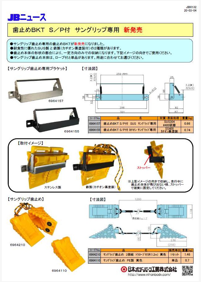 JB0132 歯止めBKT S/P付 サングリップ専用 新発売!