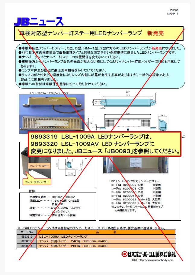 JB0093 車検対応型ナンバー灯ステー用LEDナンバ-ランプ 新タイプ発売