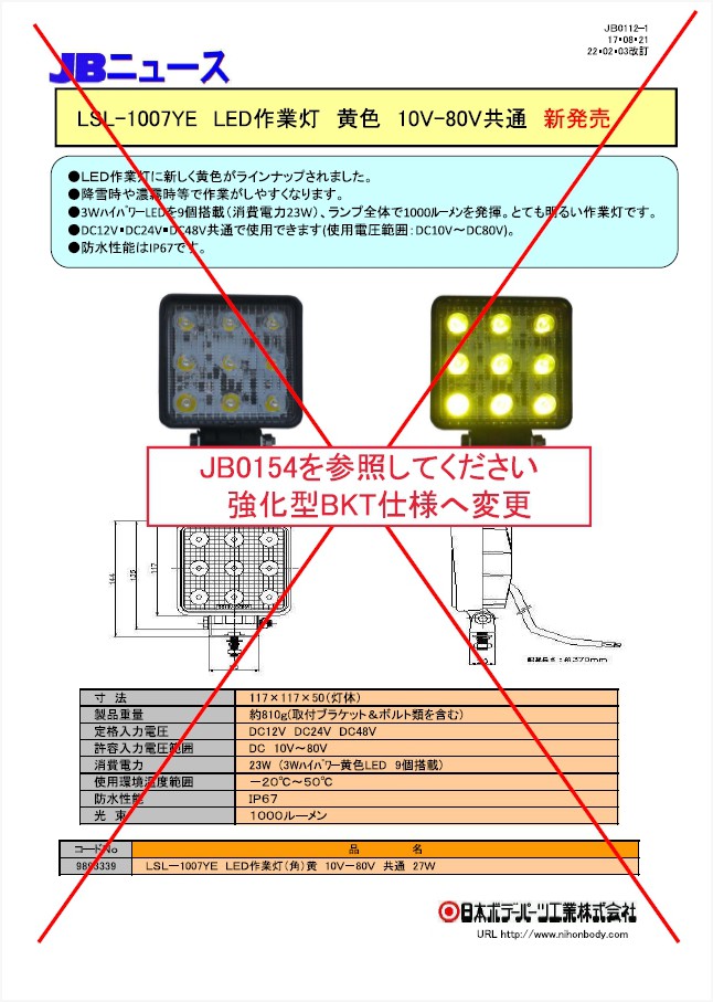 JB0112 LED作業灯 黄色 (LSL-1007YE) 新発売!